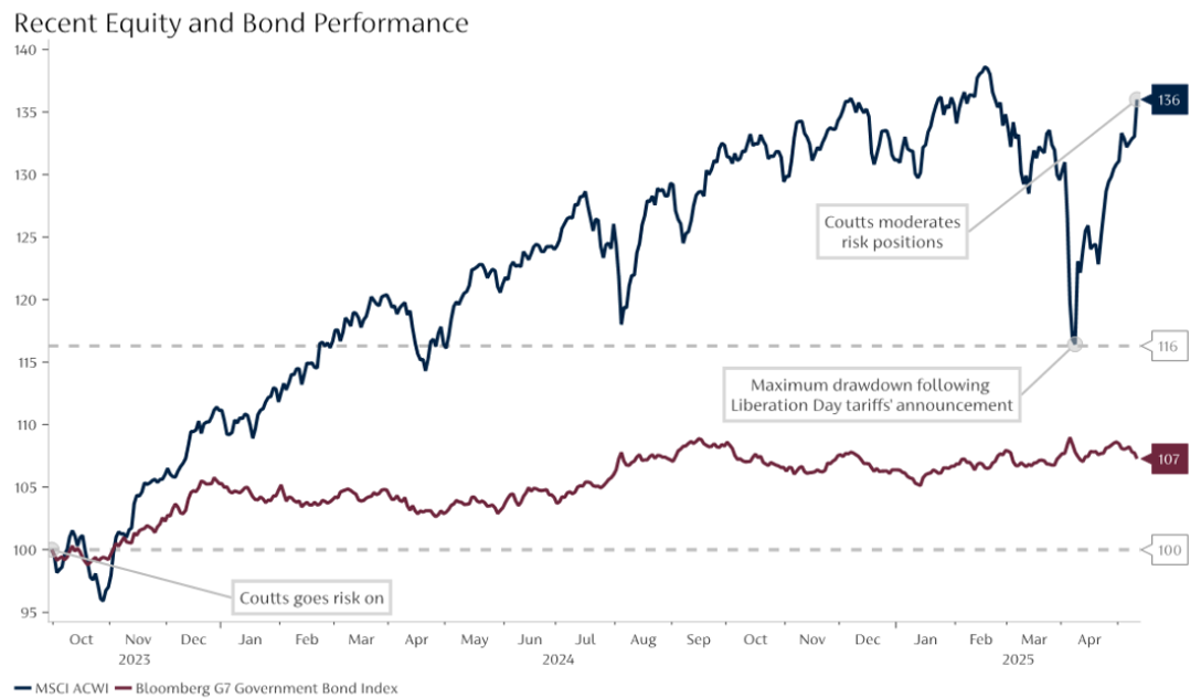 Now that this backdrop is shifting off the back of the evolving trade and political landscape, we’ve decided to reduce our global equity allocation within portfolios, notably to the US and Japan.