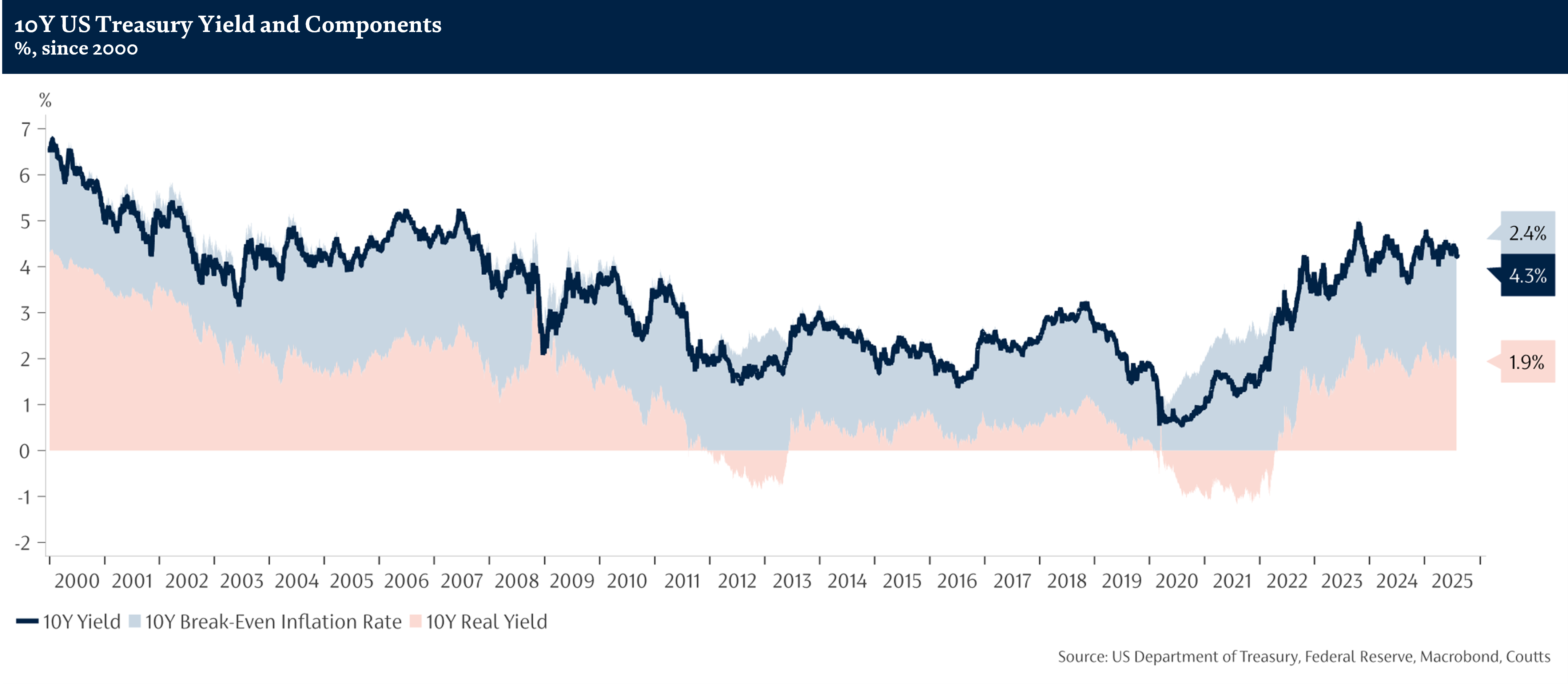 Secondly, tariffs have played a role in disrupting the US Federal Reserve’s (Fed) roadmap for cutting interest rates this year. Coming into 2025, markets expected the Fed to continue its rate cutting cycle. However, the unknown impact of tariffs halted the central bank from reducing its base rate until further economic data gave evidence that inflation was still trending down, towards the Fed’s 2% target.