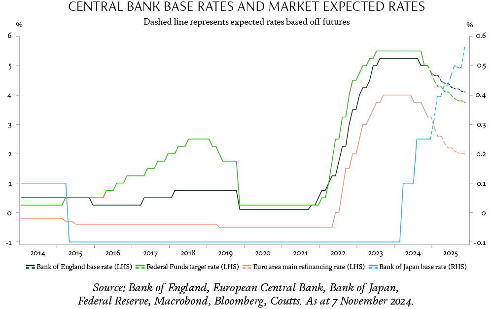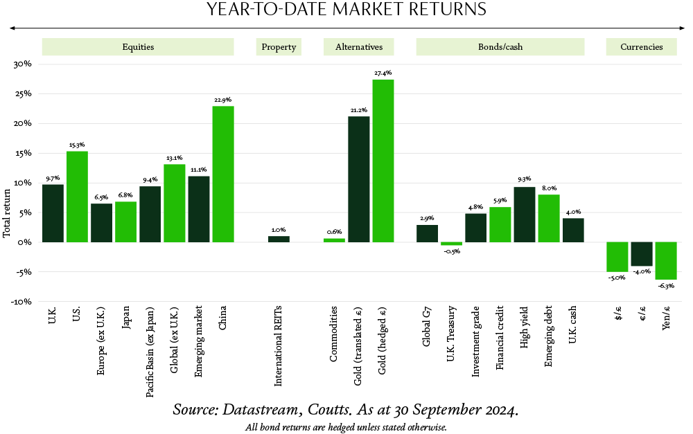 Central banks, notably the US Federal Reserve (Fed), initiated interest rate cuts in the latter half of 2024 as inflation continued to fall; now down markedly from its heady levels in late 2022. With inflation diminishing, down to 2.4% for the year to September, rate cuts were more aimed to stabilise economic growth, and were crucial in restoring market confidence against early signs of a softening labour market. As a result, markets responded with equal stability, particularly in sectors like technology and consumer goods, which historically have tended to be more sensitive to changes in consumer spending.