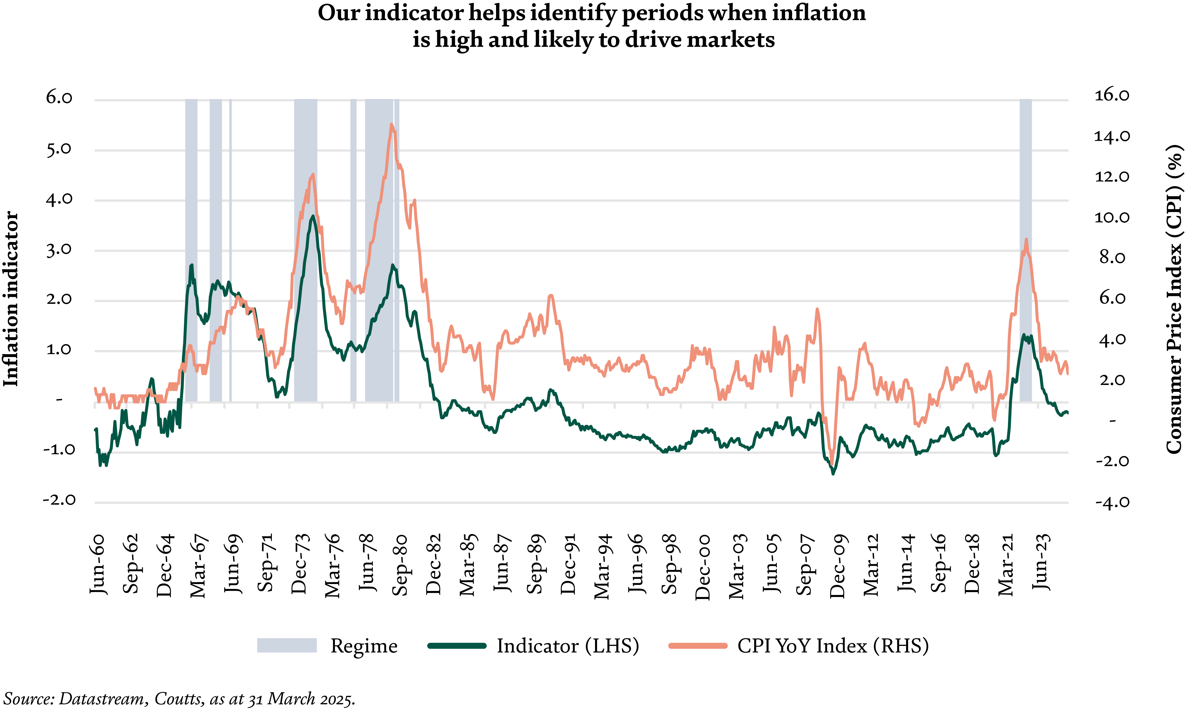 The Cycle aspect focuses on shorter-term investment performance which is more influenced by shifts in the business cycle, and their impact on investor sentiment and corporate earnings. Our research has found that the cyclical variation in growth, inflation, and policy interact to drive asset class performance over the short- to medium term (12-18 months).