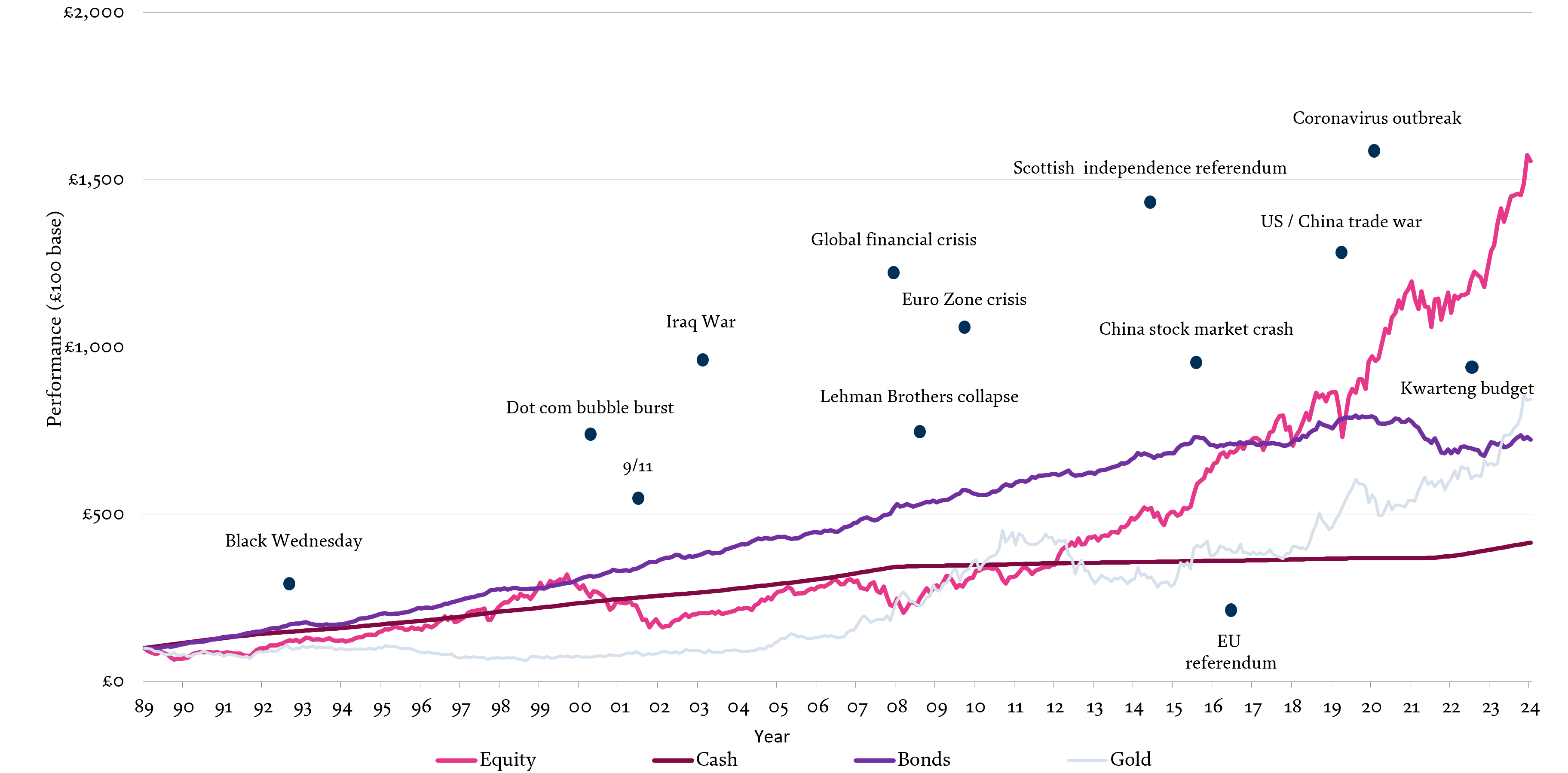 An important consideration when market conditions are changing is to focus on an extended time horizon. Those who hold firm through turbulence could be well placed to benefit when markets eventually settle.